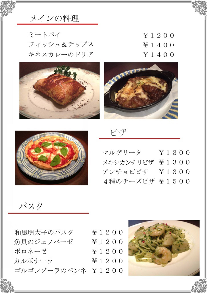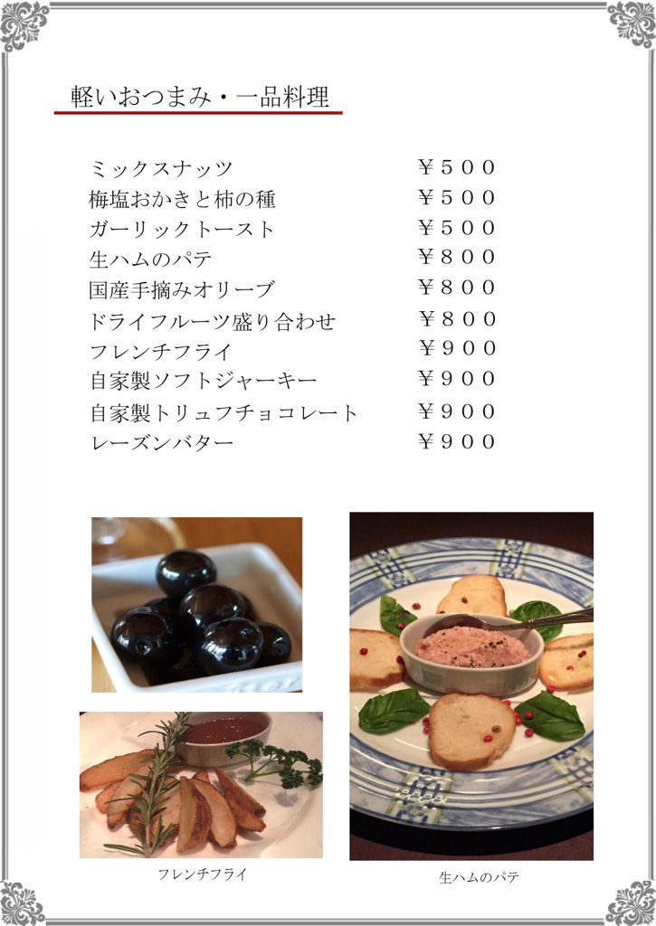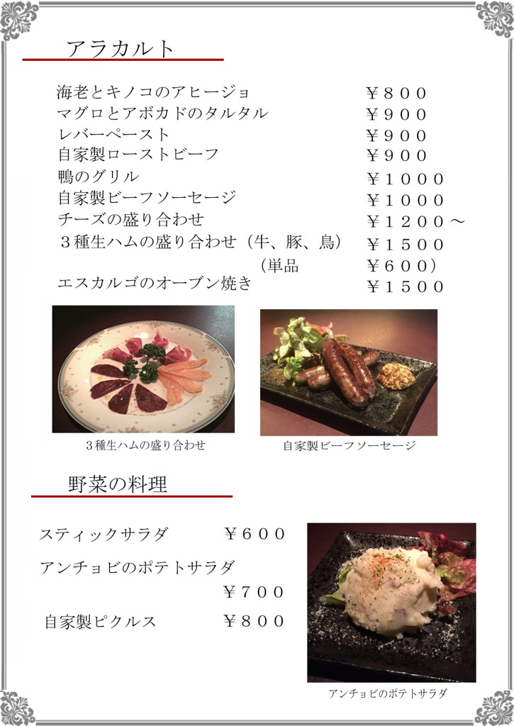 | ※当店では、上記価格にサービスチャージ10%、および消費税を乗じた額を頂戴しております。