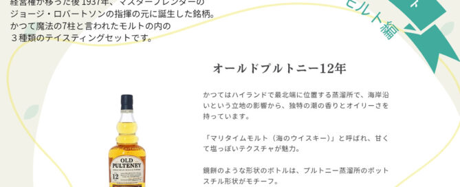 かつて魔法の7柱と言われたモルトの内の3種類のテイスティングセットです。