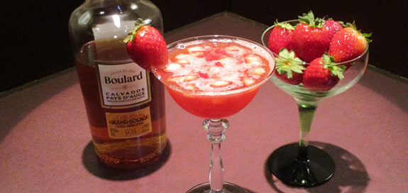 手作りした苺のコンフィチュールを使ったカルヴァドスベースのカクテルです。