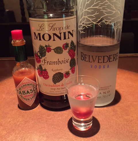 ○マッドドッグ ポーランドの漁師たちが気付けに煽るショットスタイルのカクテル。フランボワーズとタバスコという意外な組み合わせが、美味しさの感動を呼びます。