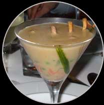 マティーニを中心にオリジナリティ溢れるカクテルをシェアし堪能しました。 一例を挙げると、ウォッカトニックウォーターをゼラチンを入れゼリー状にしたもの(写真下の左)をバーナーで炙ったライムの輪切りの上に載せたものとカクテルを一緒に楽しむというような感じ。 個人的な感想は、味わい深くて提供方法に遊び心があり新たな発見がありました。