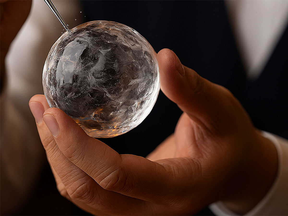 オウンウェイの丸氷は、型で作るものではなく、ひとつひとつピックで削って仕上げています正直に言えば、効率は良くありません。